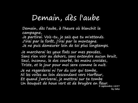 Demain Dès L’aube DE :Victor Hugo - Victor Hugo Je Partirai - Demain, dès l'aube, à l'heure où blanchit la campagne…, ou plus simplement Demain, dès l'aube…, est l'un des plus célèbres poèmes de Victor Hugo, publié ...